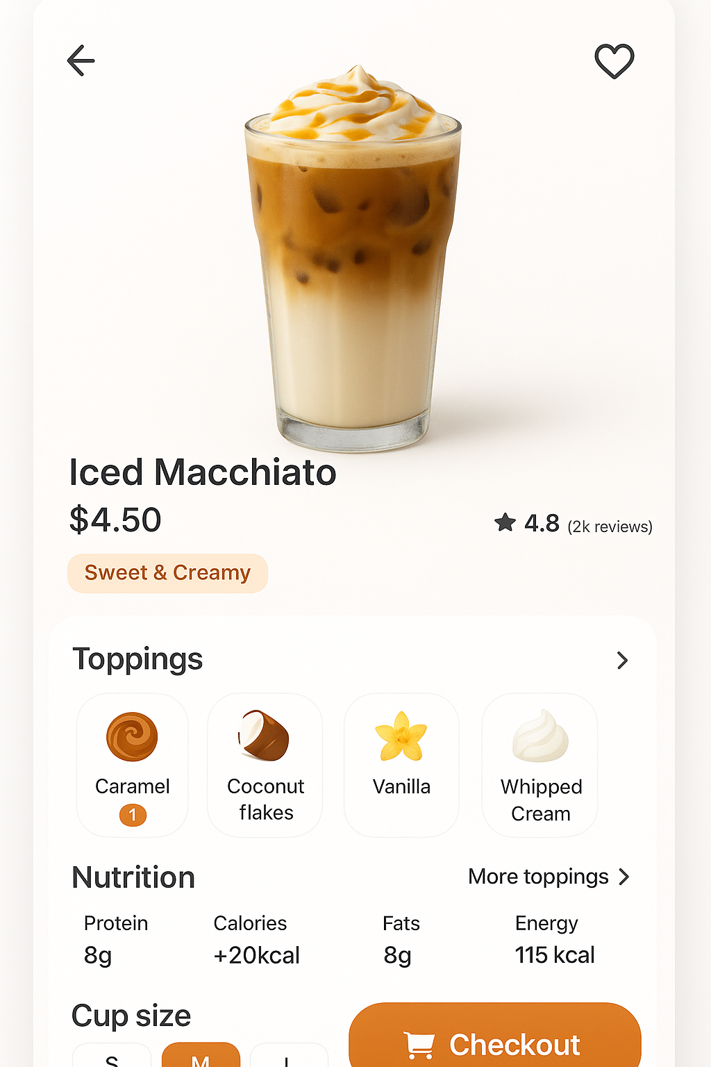 Choisissez votre type de lait, votre douceur, vos arômes ou même votre intensité : tout est ajustable. Commandez avant d’arriver, récupérez quand c’est prêt.
